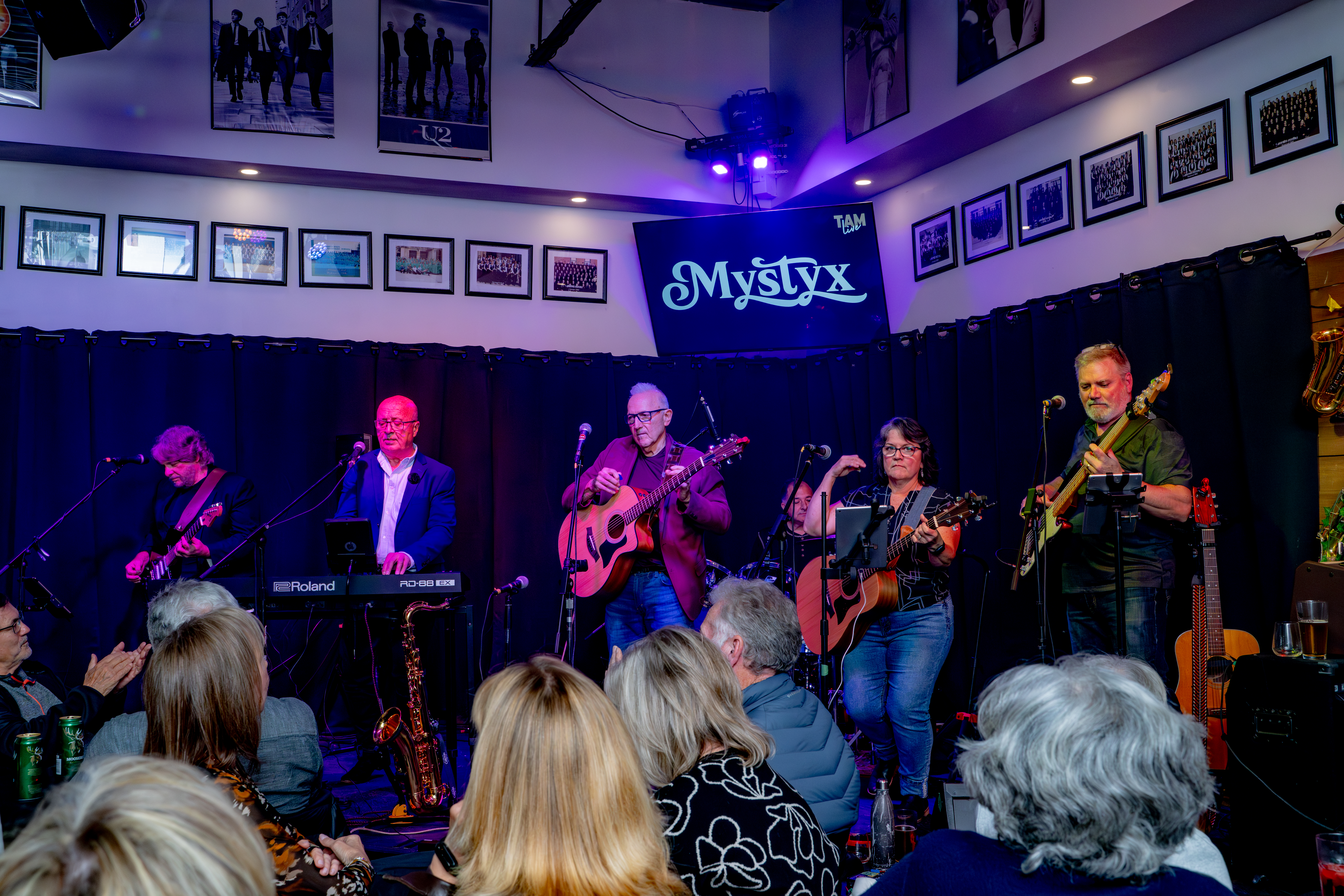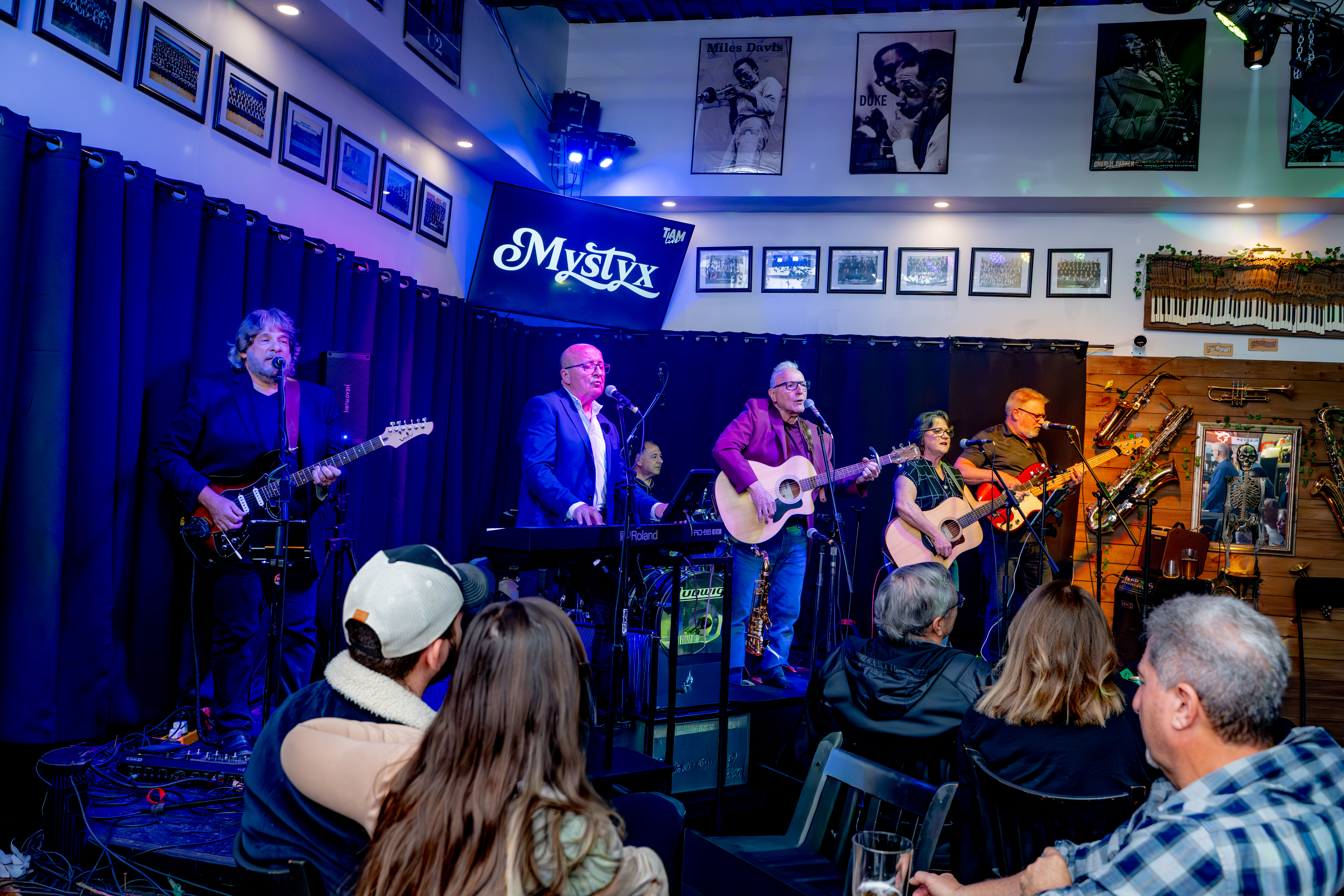 Mystyx is a dynamic six-piece band formed in 2022, composed of seasoned musicians from Hamilton, Ontario with decades of experience. Specializing in a diverse range of genres, including classic rock from the 60s to today, jazz, blues, and country, Mystyx delivers a unique musical experience. The band’s sound is defined by rich vocal harmonies, and several members are multi-instrumentalists, adding depth and versatility to their performances. The talented lineup includes Frank Rocchi (vocals, keyboards, guitar, and saxophone), Ron Palangio (lead guitar, synth, and vocals), Ken Chesla (keyboards, percussion, and vocals), and the husband-and-wife duo of Cindy Dunn-Doyle (guitar and vocals) and Kevin Doyle (bass, acoustic guitar, and vocals). Completing the ensemble is the band’s newest member, Domenic Pellicciotta on drums. Mystyx is available for private engagements and special events, bringing their exceptional talent and energy to any occasion.